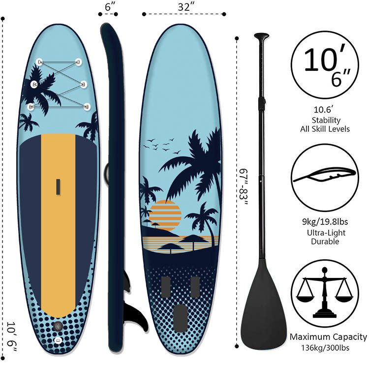 - [TIUP DAN PORTABEL]Papan dayung stand-up tiup Huarui dapat dilipat menjadi tas travel, berat keseluruhan hanya 18.5LBS, Anda dapat membawa papan dayung tiup kapan saja dan di mana saja. Dapat dengan cepat meningkat (11-15PSI) atau kempes, mudah dipasang , simpan dan bawa, dan sangat ideal untuk danau, sungai, atau lautan.